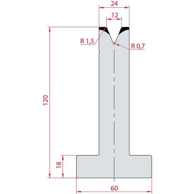 3062: Matrice en T acier C45 V:12 à 60° H:120
