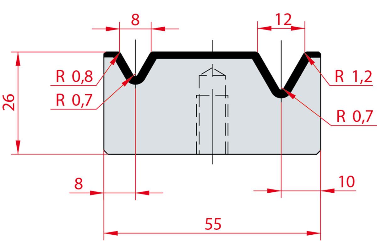2016: Matrice Amada Promecam à 2V 60° V8 et V12 Hauteur 26 mm